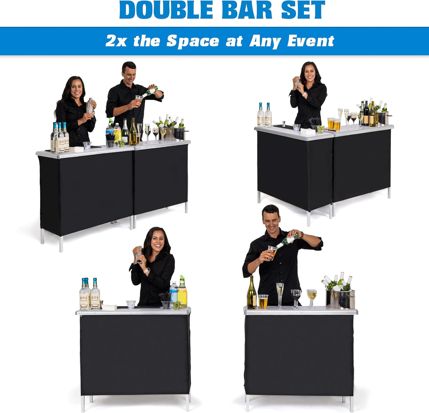 - DOUBLE BAR SET: Includes 2 portable bar tables and 2 attachable black bar skirts that works for casual and formal events