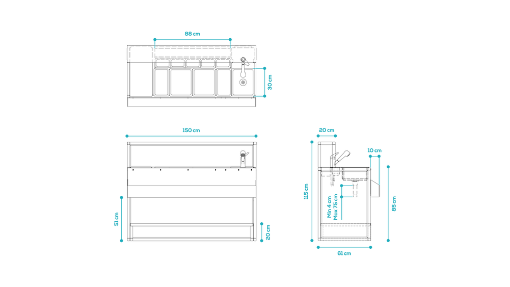 Thanks to the included trolley, you can easily dismantle and transport your cocktail station from one event to another, and the wheels allow quick movement even when fully assembled. With the TITANO 150, nothing will hold you back.