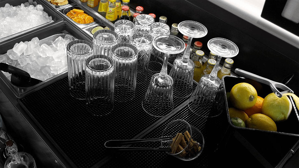 LED-lit service counter for electricity-free, magical cocktail presentations even in the dark